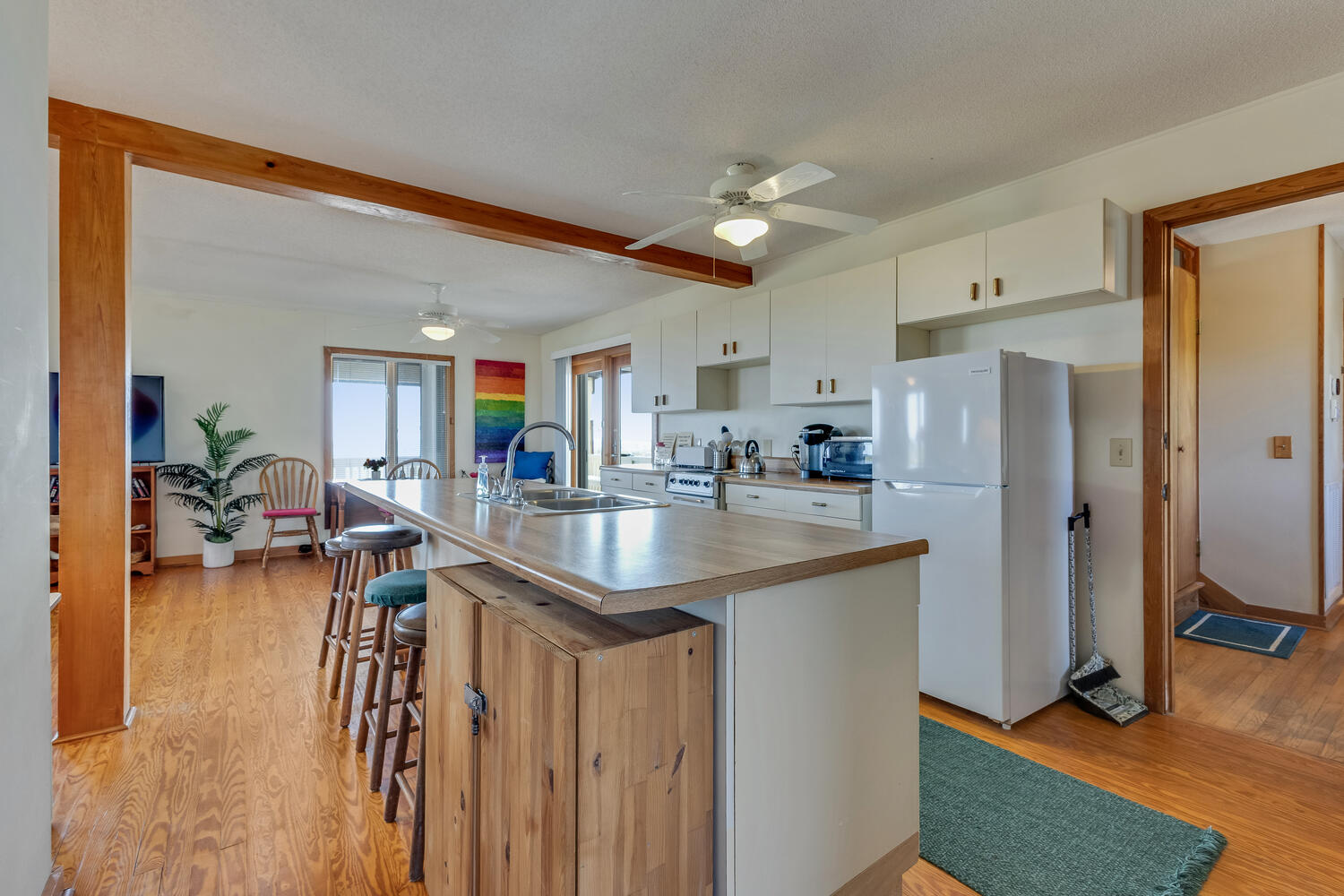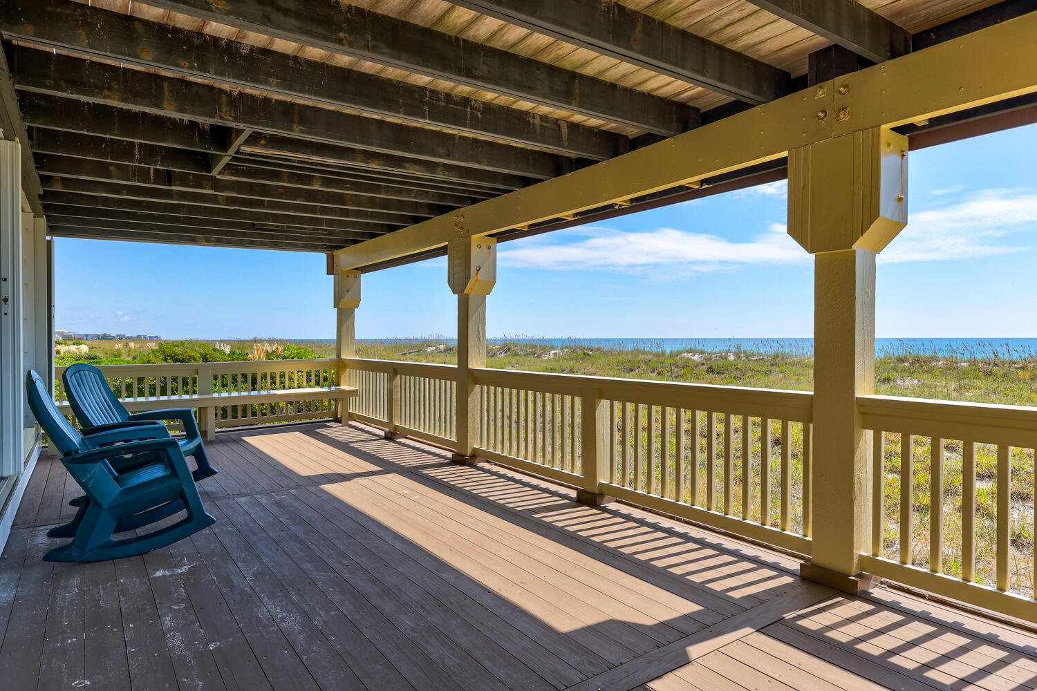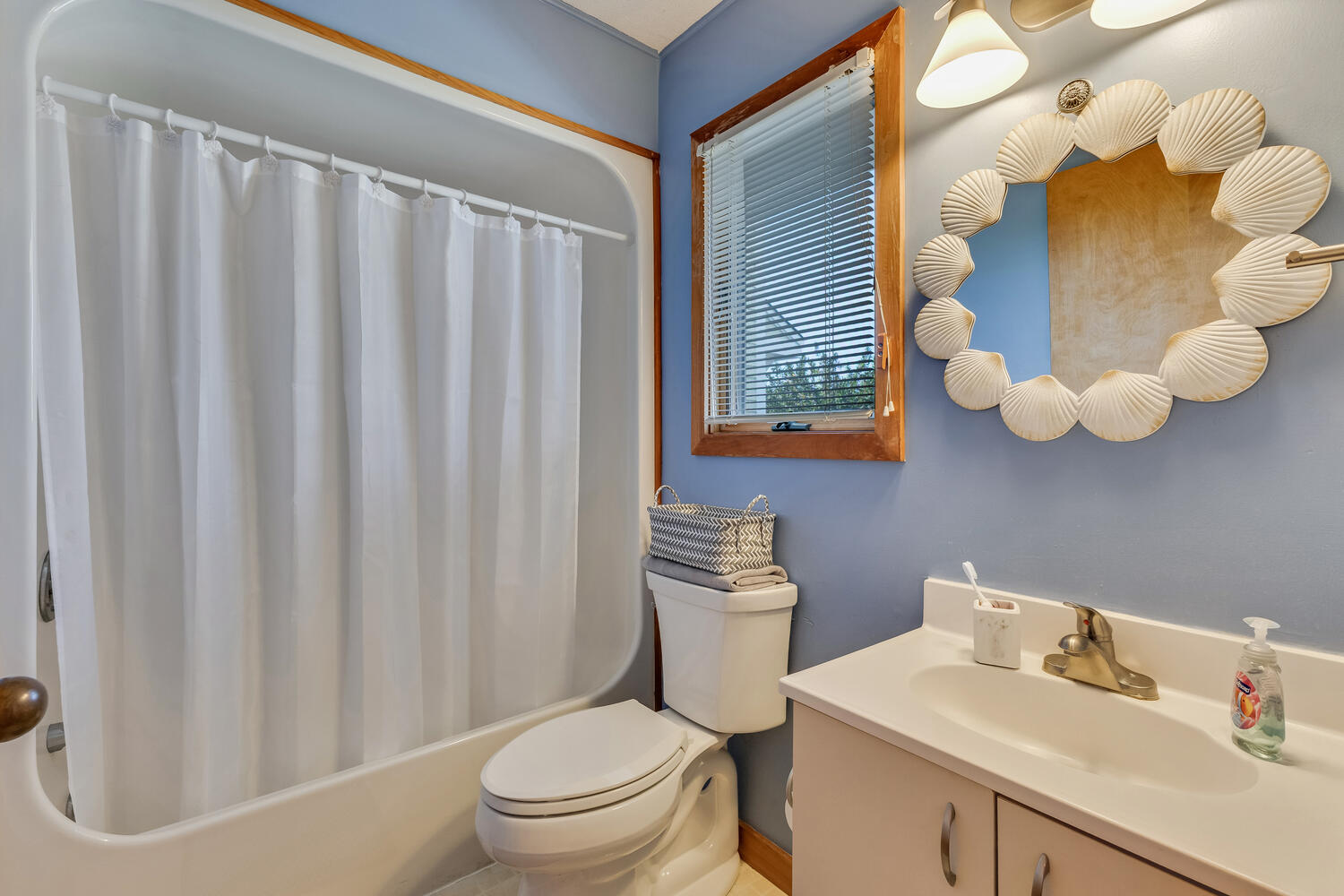 Outside, you’ll find spacious decks, a ping pong table, covered parking, an outdoor dining table (perfect for sandy kids), an outdoor shower, rocking chairs and a private walkway to the beach.