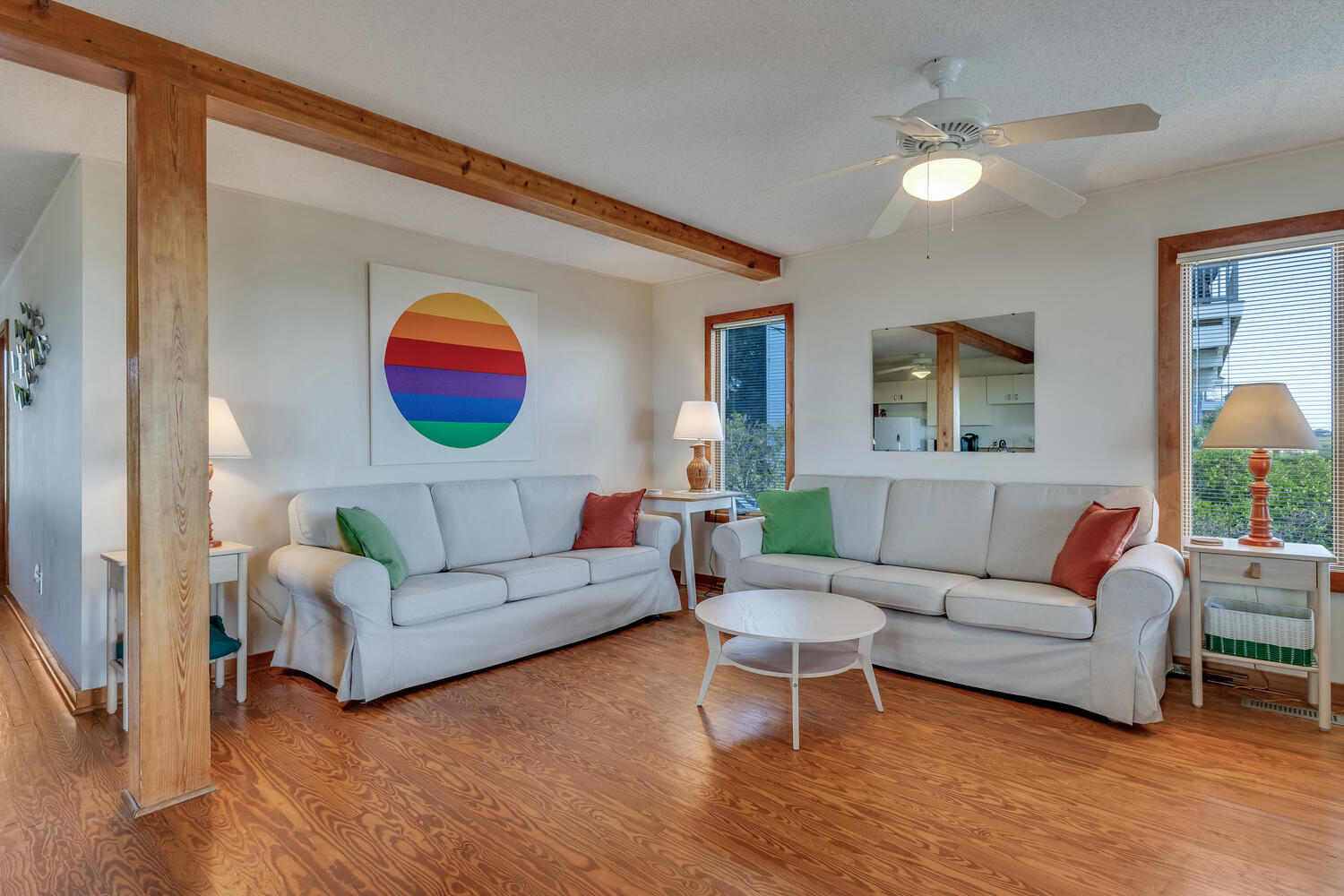 The Top Floor (third story) features a large kitchen, living room, dining room and two bedrooms.
