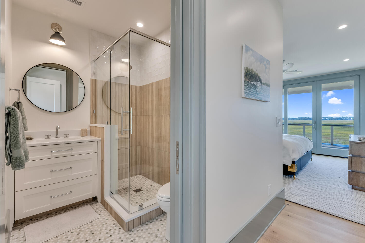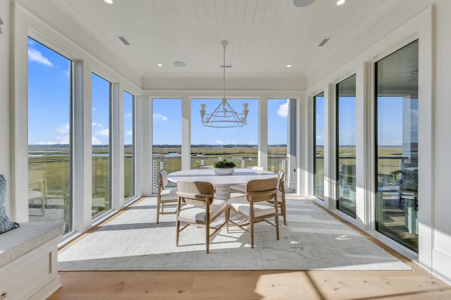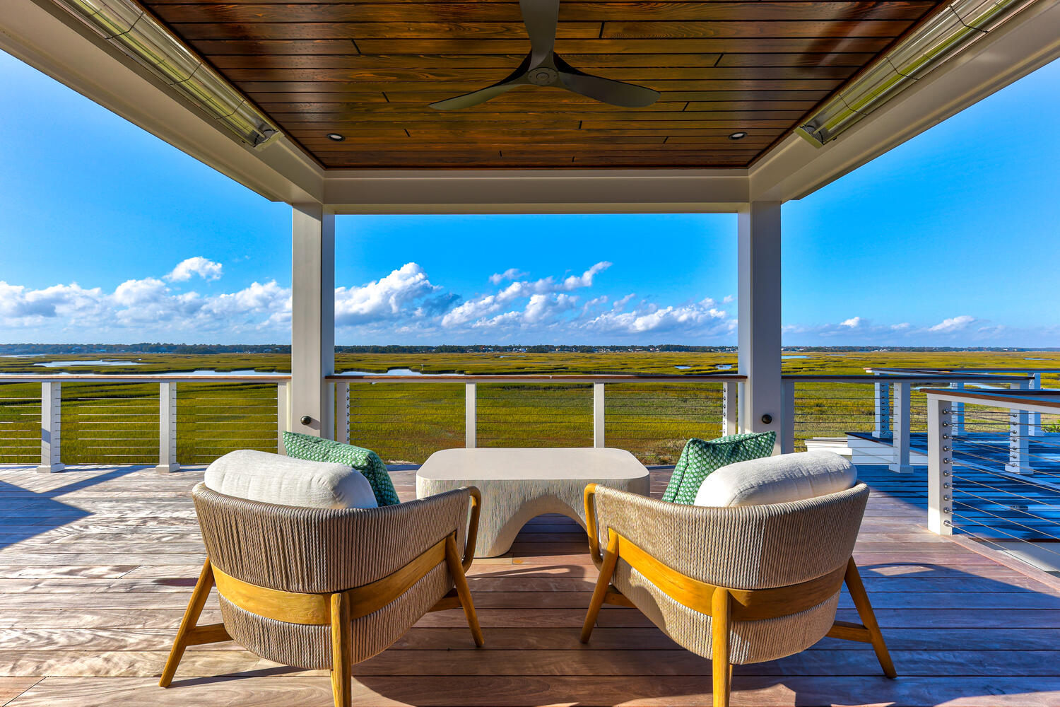 Be among the first to experience this stunning new home. On a large lot along the marsh, it has the advantage of views of the waterways and the ocean. With 5 decks and numerous cozy window seats, you will enjoy the views in all directions, perfect for both sunrise and sunsets.