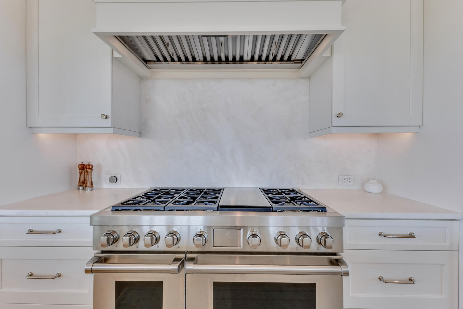 The main living area is located on the third floor and is both gorgeous and comfortable. Taking its cue from the ocean, the space is relaxing in blue, white and natural tones. There are multiple spaces to sit, lounge and dine. You will be pleasantly surprised at the large kitchen with a chef’s stove and space for multiple cooks, plus stools to keep them company.